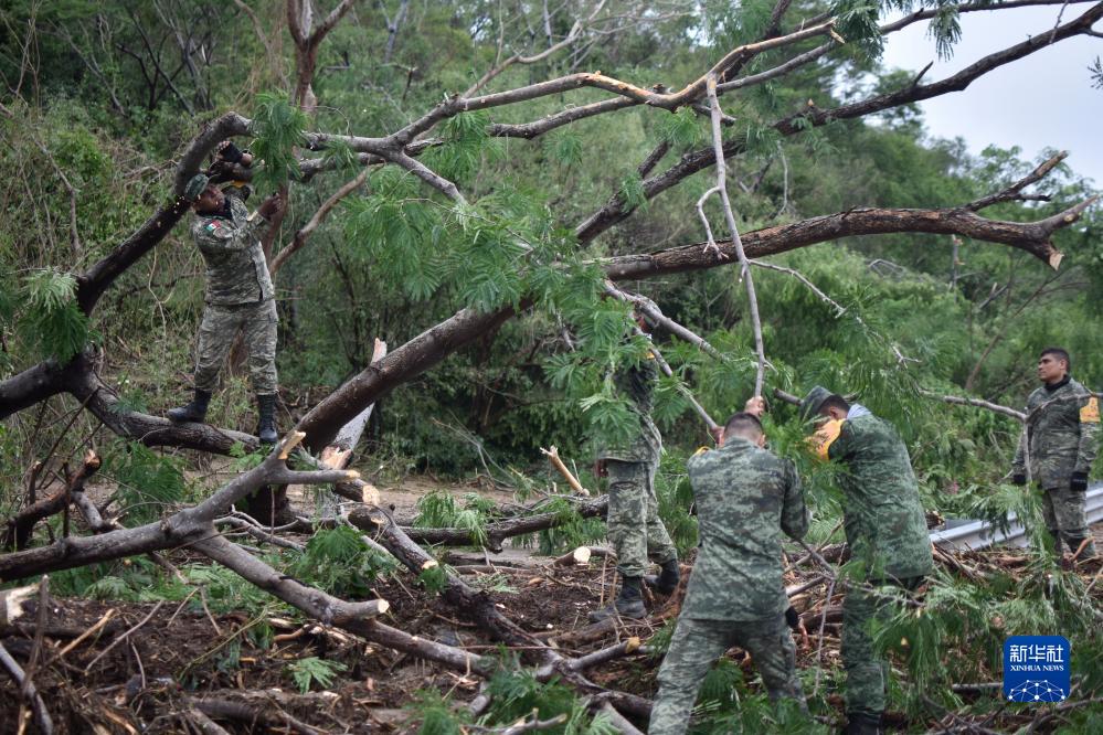 10月25日,在墨西哥格雷羅州奇爾潘辛戈市,軍人清理因颶風(fēng)“奧蒂斯”過(guò)境而堵塞的道路。