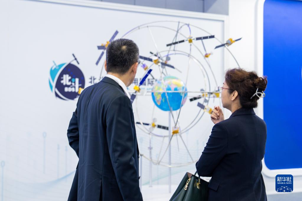 10月26日,在株洲國際會(huì )展中心,觀(guān)眾在觀(guān)看北斗系統組網(wǎng)模型。