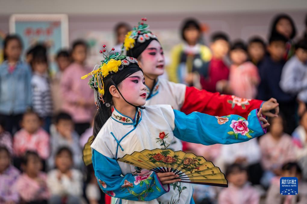 當日,云南省昆明市五華區文林小學(xué)開(kāi)展滇劇演出活動(dòng),少兒滇劇傳習班的小演員們表演了多個(gè)節目。文林小學(xué)自2014年開(kāi)始與昆明市文化館聯(lián)合開(kāi)展滇劇進(jìn)校園活動(dòng),成為云南省滇劇文化傳承項目的第一所試點(diǎn)小學(xué)。目前,學(xué)校已累計培養小演員近500名,孩子們加深了對非遺文化的認識,提升了審美情趣和藝術(shù)素養。