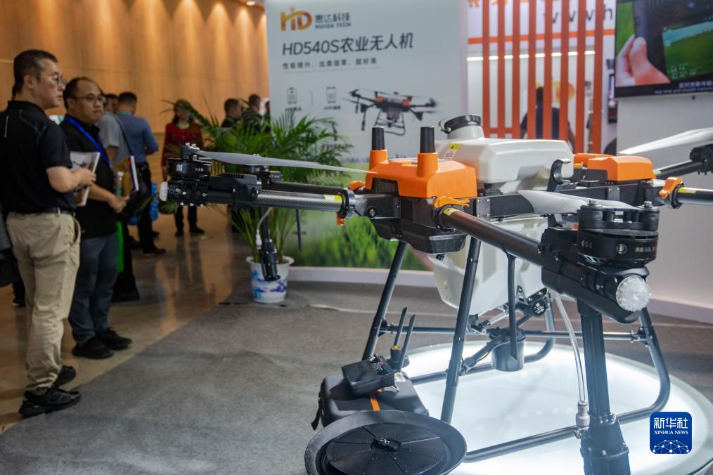 10月26日,觀(guān)眾在2023中國國際農業(yè)機械展覽會(huì )現場(chǎng)參觀(guān)農業(yè)無(wú)人機。