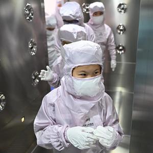 10月26日,學(xué)生準備進(jìn)入半導體生產(chǎn)超凈間。