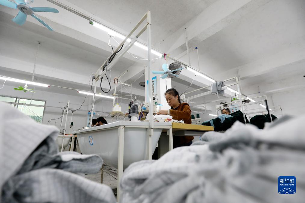10月25日,村民在資興市州門(mén)司鎮州門(mén)司村就業(yè)幫扶車(chē)間加工服裝。