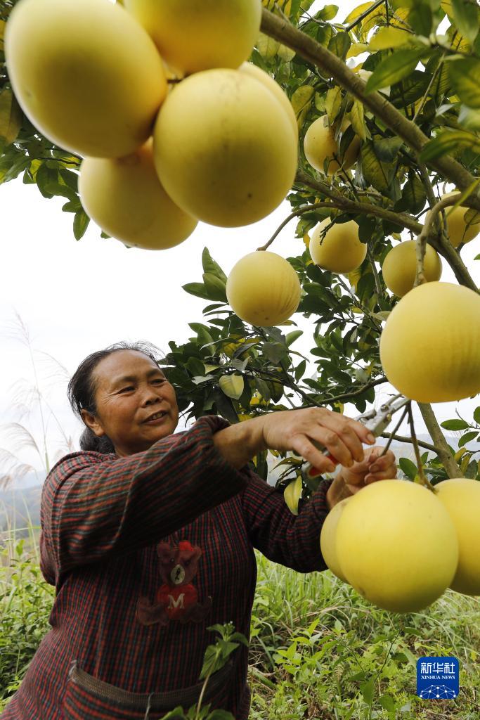 10月24日,村民在貴州省錦屏縣茅坪鎮紅心蜜柚種植基地采摘柚子。