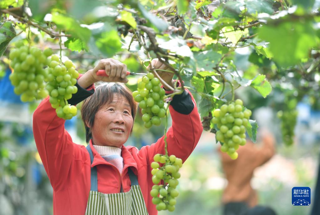 10月19日,果農在河北省石家莊市元氏縣殷村鎮紅旗村采摘葡萄。