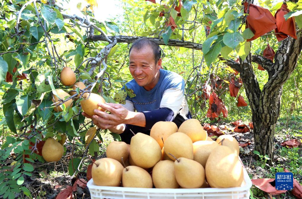 10月14日,河南省洛陽(yáng)市汝陽(yáng)縣劉店鎮二郎村雪梨種植大戶(hù)袁小學(xué)采摘雪梨。