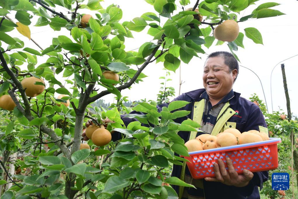 10月11日,村民在貴州省畢節市百里杜鵑管理區普底鄉穎川村采收黃梨。