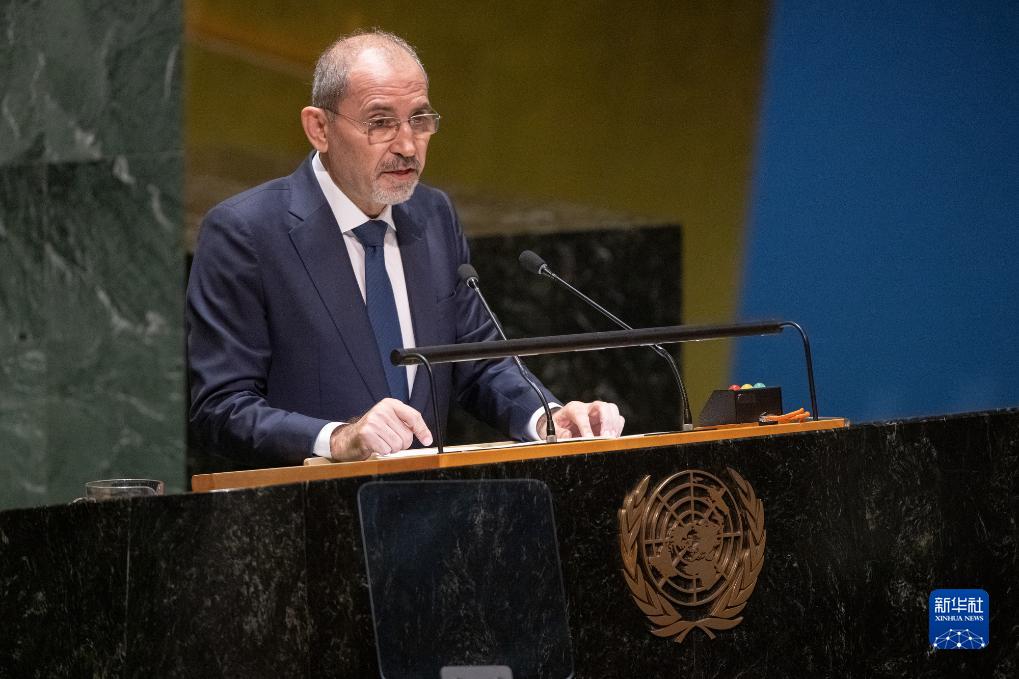 10月26日,在位于紐約的聯(lián)合國總部,約旦副首相兼外交大臣薩法迪代表阿拉伯集團在關(guān)于巴以沖突的第十次緊急特別會(huì )議上發(fā)言。