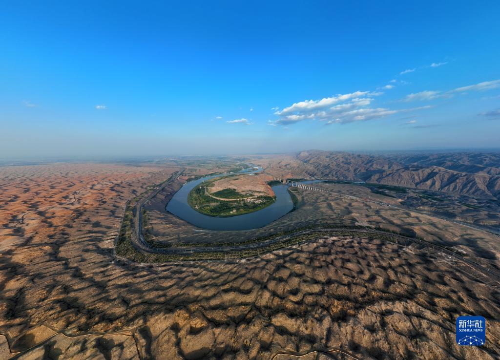 2023年9月6日在寧夏回族自治區中衛市拍攝的黃河(無(wú)人機照片)。