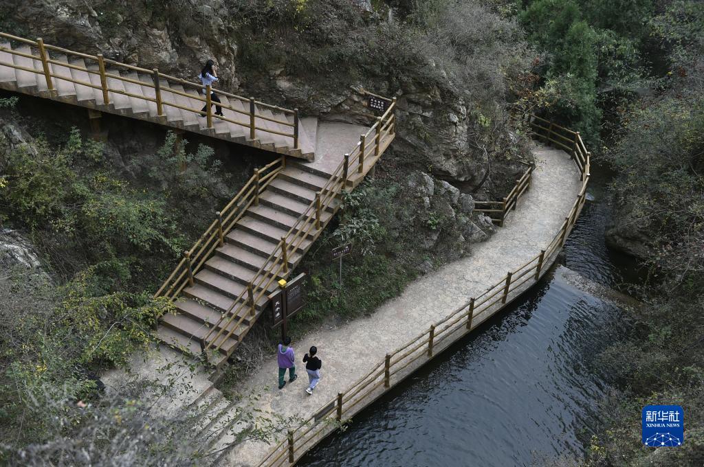 霜降節氣過(guò)后,位于河南省禹州市鳩山鎮的大鴻寨國家森林公園層林盡染,景色宜人,吸引游客前來(lái)登高觀(guān)景、賞秋拍照。