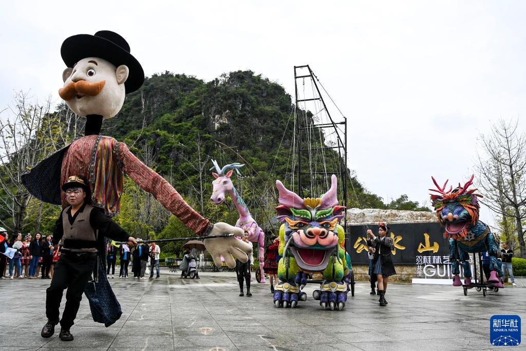 10月27日,在廣西桂林市山水公園,演員們在進(jìn)行戲劇巡游。
