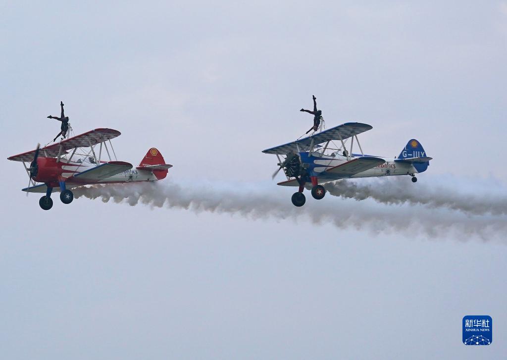 英國御風(fēng)機翼行走特技飛行表演隊在進(jìn)行飛行特技展示(10月27日攝)。