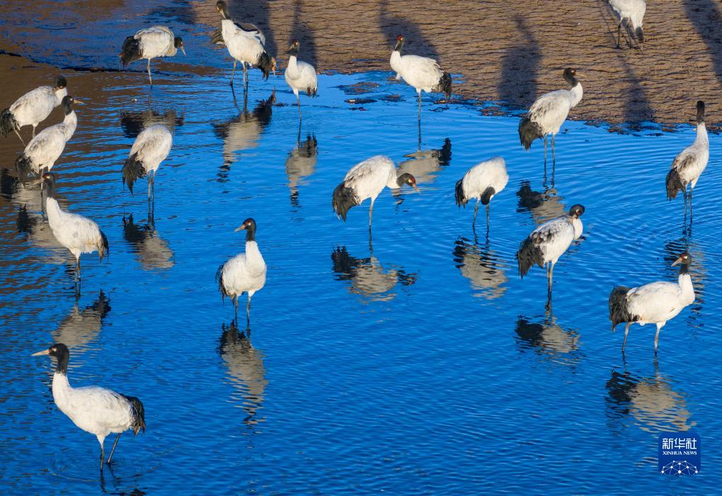 西藏林周迎來(lái)越冬黑頸鶴