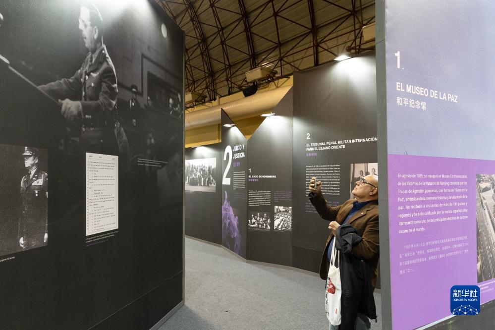 10月26日,觀(guān)眾在西班牙馬德里參觀(guān)《世界記憶、和平愿景——南京大屠殺史實(shí)展》。