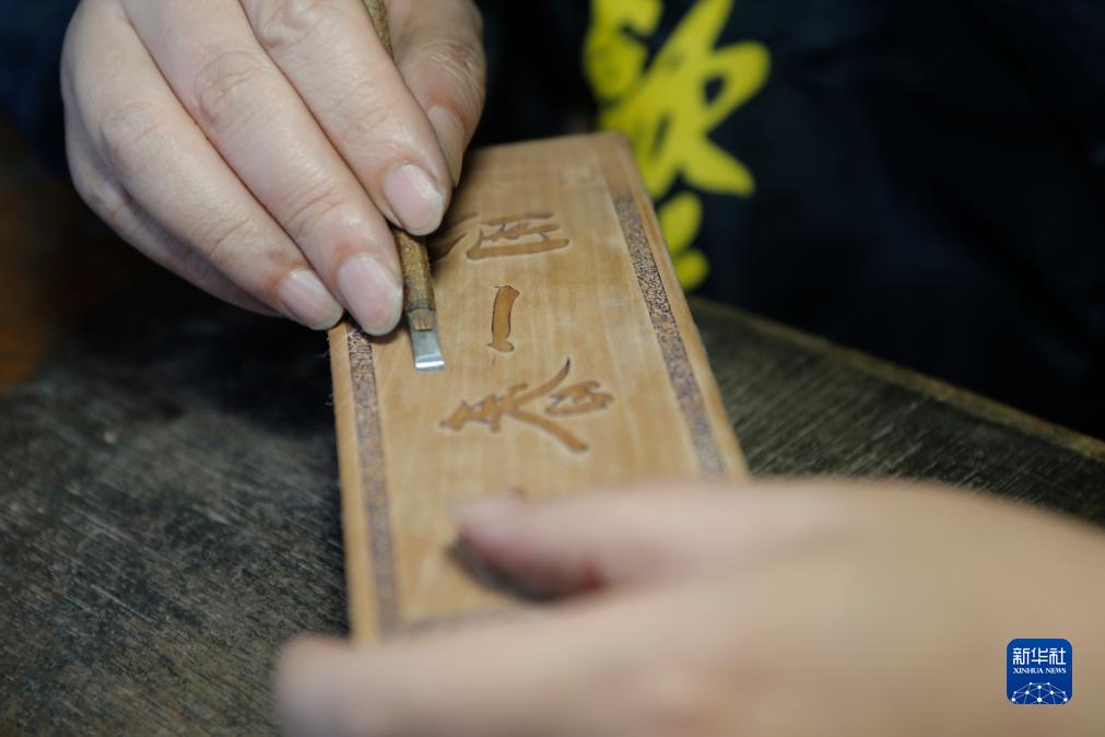 10月24日,在安徽省黃山市歙縣老胡開(kāi)文墨業(yè)有限公司,周健在雕刻墨模。