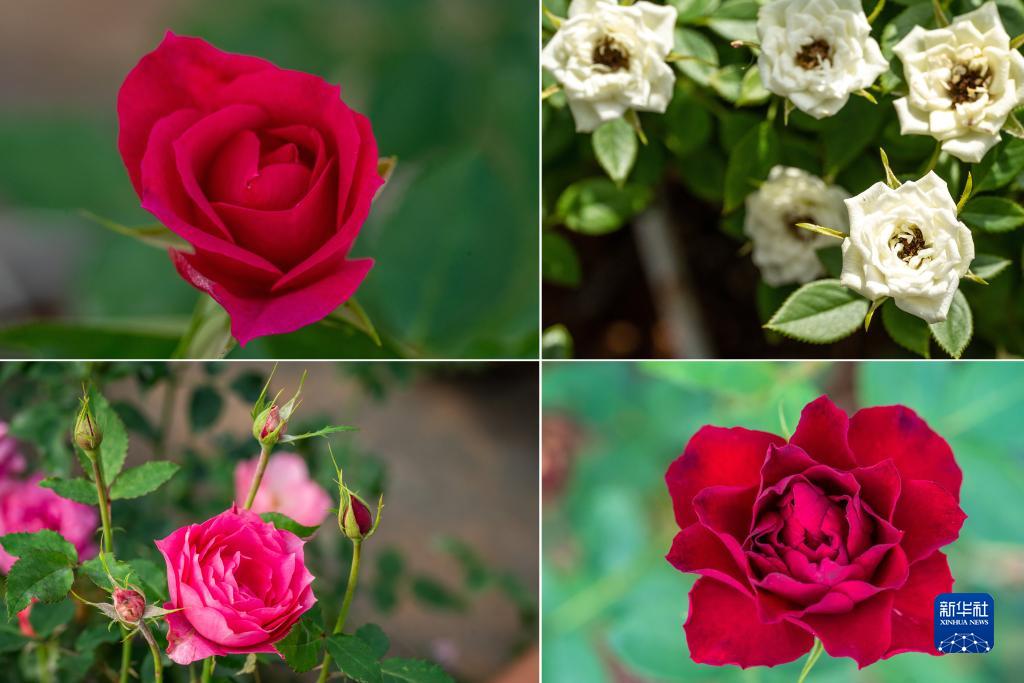 這是云南省安寧市現代農業(yè)園區玫瑰種植示范園里玫瑰新品種的拼版照片。