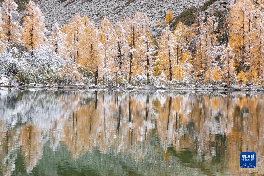 彩林倒映在黨嶺村葫蘆海中(10月27日攝)。