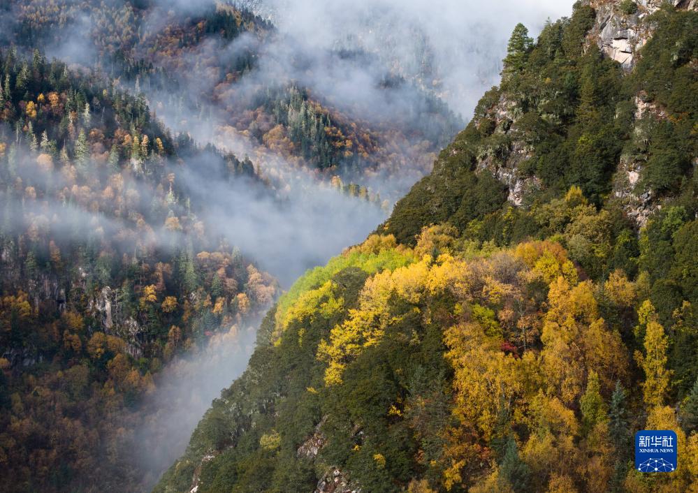 黨嶺村的彩林一角(10月27日攝,無(wú)人機照片)。
