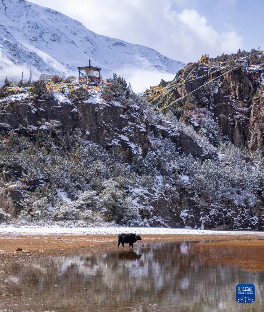 西藏昌都市邊壩縣位于念青唐古拉山脈南麓,由于海拔較高,10月末的邊壩縣已迎來(lái)降雪。這里雪山聳立,冰洞湛藍,飛雪綿綿,巖羊在雪面上行走,美景如畫(huà)。