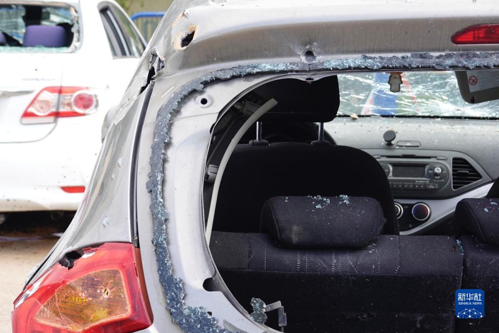 這是10月29日在以色列南部城市阿什杜德拍攝的遭火箭彈襲擊的車(chē)輛。