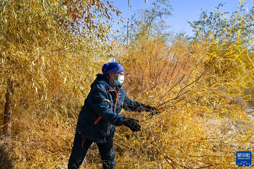 10月28日,德力格將修剪下來(lái)的樹(shù)枝堆放起來(lái)。