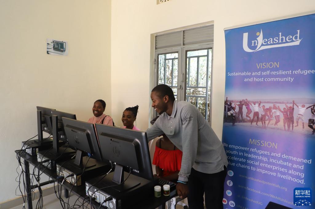 10月14日,在烏干達納基瓦萊難民營(yíng),“未釋放-運動(dòng)潛能組織”的學(xué)員們在計算機教室上課。