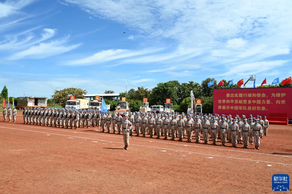 10月28日,在聯(lián)合國駐南蘇丹特派團瓦烏超級營(yíng)地的中國工兵營(yíng)區,維和工兵和醫療分隊的官兵在授勛儀式現場(chǎng)列隊。