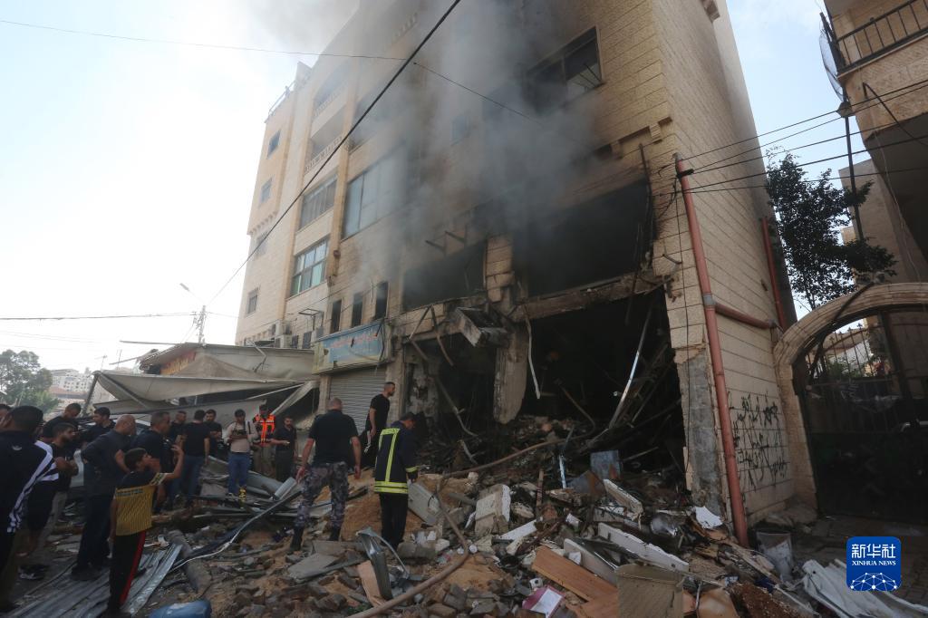 10月30日,在約旦河西岸城市杰寧,人們查看一處損毀的建筑。