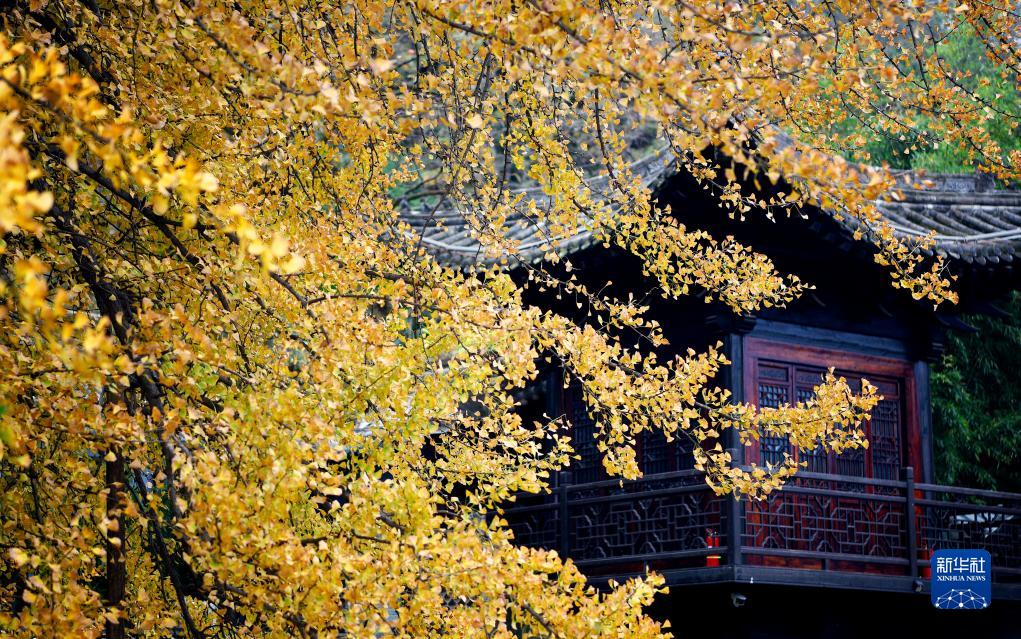 深秋時(shí)節,陜西省西安市長(cháng)安區終南山古觀(guān)音禪寺內的千年銀杏滿(mǎn)目金黃,吸引游客參觀(guān)游覽。