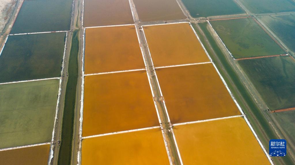 10月31日拍攝的遼寧省營(yíng)口市老邊區的鹽田(無(wú)人機照片)。