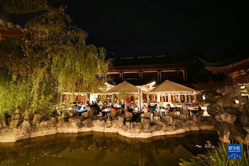 9月27日,人們在德國漢堡豫園餐廳用餐。