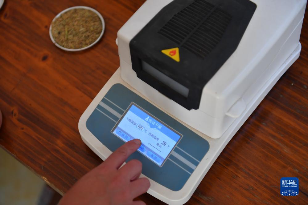 11月1日,在湖南省瀏陽(yáng)市龍伏鎮龍伏村,工作人員使用自動(dòng)快速水分測定儀檢測稻谷的含水量。