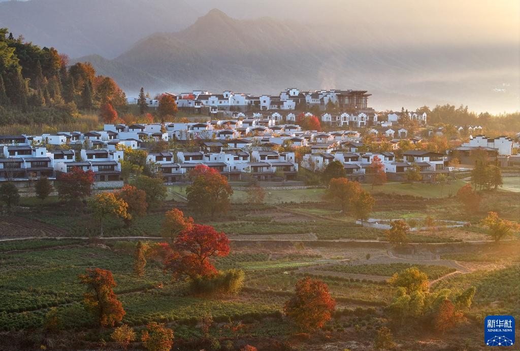 11月1日在安徽省黃山市黟縣宏村鎮盧村拍攝的秋景(無(wú)人機照片)。