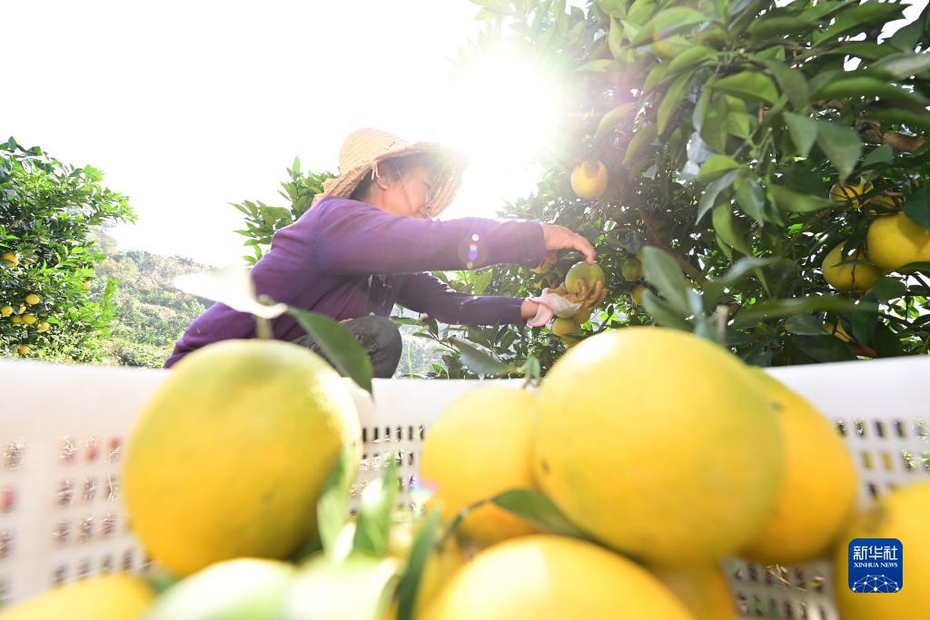 11月1日,在江西省贛州市章貢區水西鎮永安村,果農在果園內采摘臍橙。