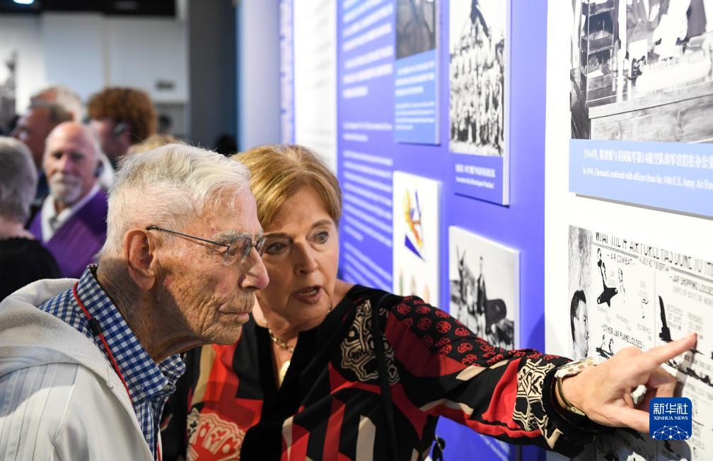 11月1日,飛虎隊老兵莫耶(前左)在重慶史迪威博物館參觀(guān)。