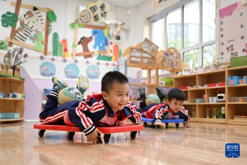 11月1日,天津市和平區第五幼兒園的小朋友在室內開(kāi)展活動(dòng)。