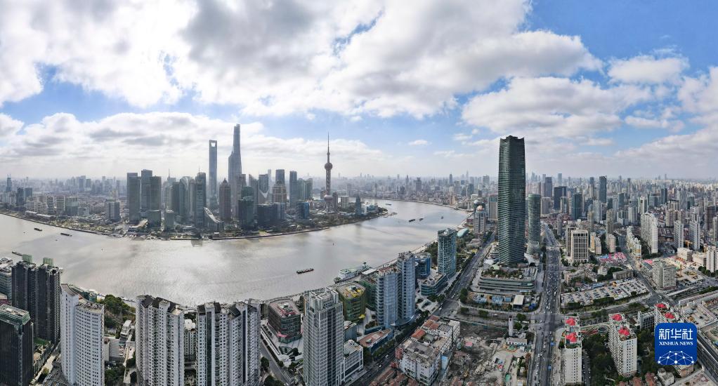 從上海虹口區北外灘空中俯瞰黃浦江兩岸(1月10日攝,無(wú)人機全景照片)。