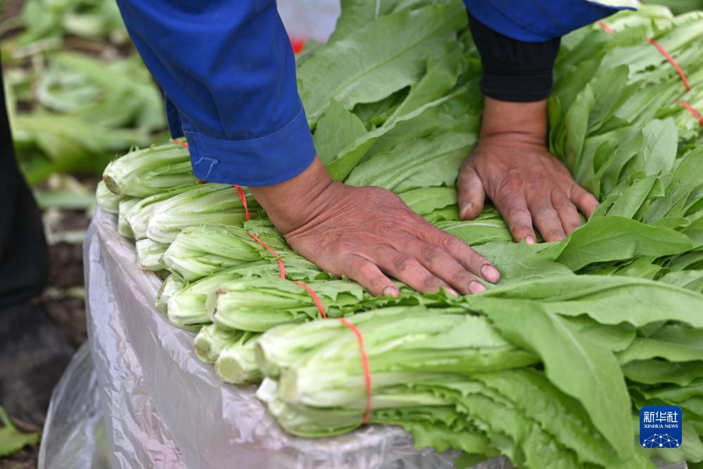 11月2日,在天津市西青區辛口鎮當城村,農戶(hù)把收獲的油麥菜打包。