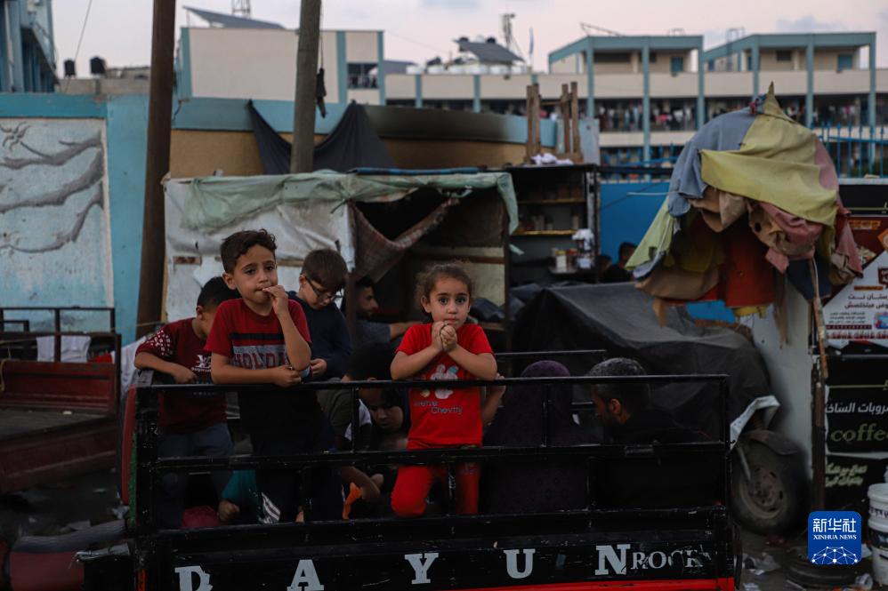 這是11月2日在加沙南部城市汗尤尼斯一處市場(chǎng)拍攝的兒童。