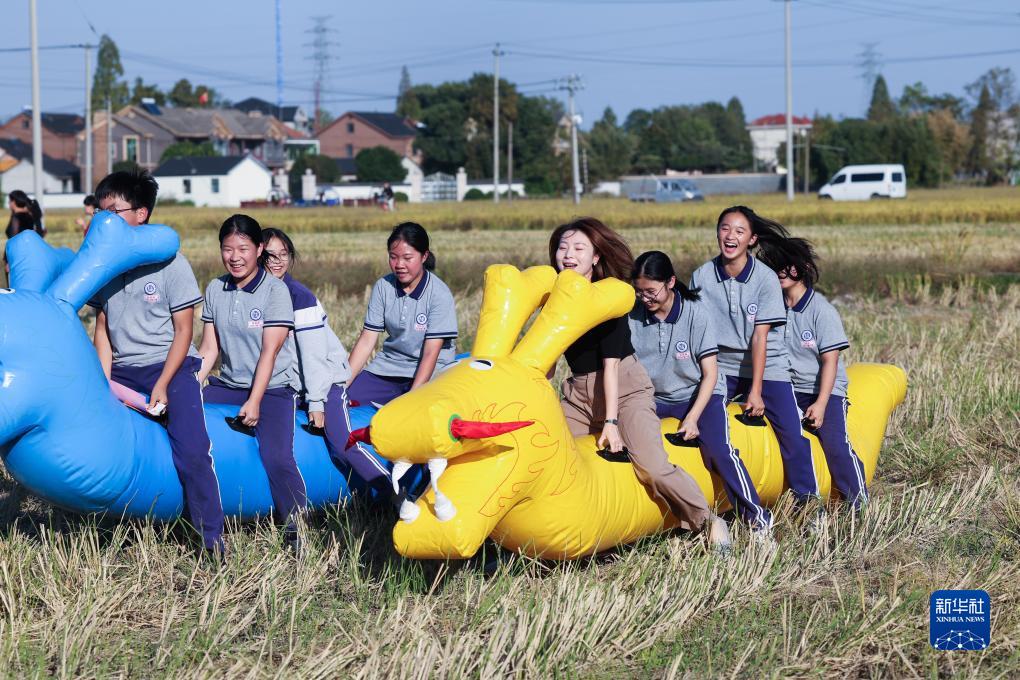 11月2日,浙江省杭州市余杭區徑山鎮前溪村舉行豐收節活動(dòng),現場(chǎng)展示了當地特產(chǎn)、美食、文創(chuàng )產(chǎn)品等,游客還能體驗南瓜保齡球、大鵝套圈、稻田拔河、割稻子等鄉間農趣活動(dòng)。近年來(lái),前溪村依托萬(wàn)畝稻田發(fā)展智慧農業(yè)和鄉村特色文旅產(chǎn)業(yè),走出一條“風(fēng)景引流、共同富?!钡恼衽d之路。