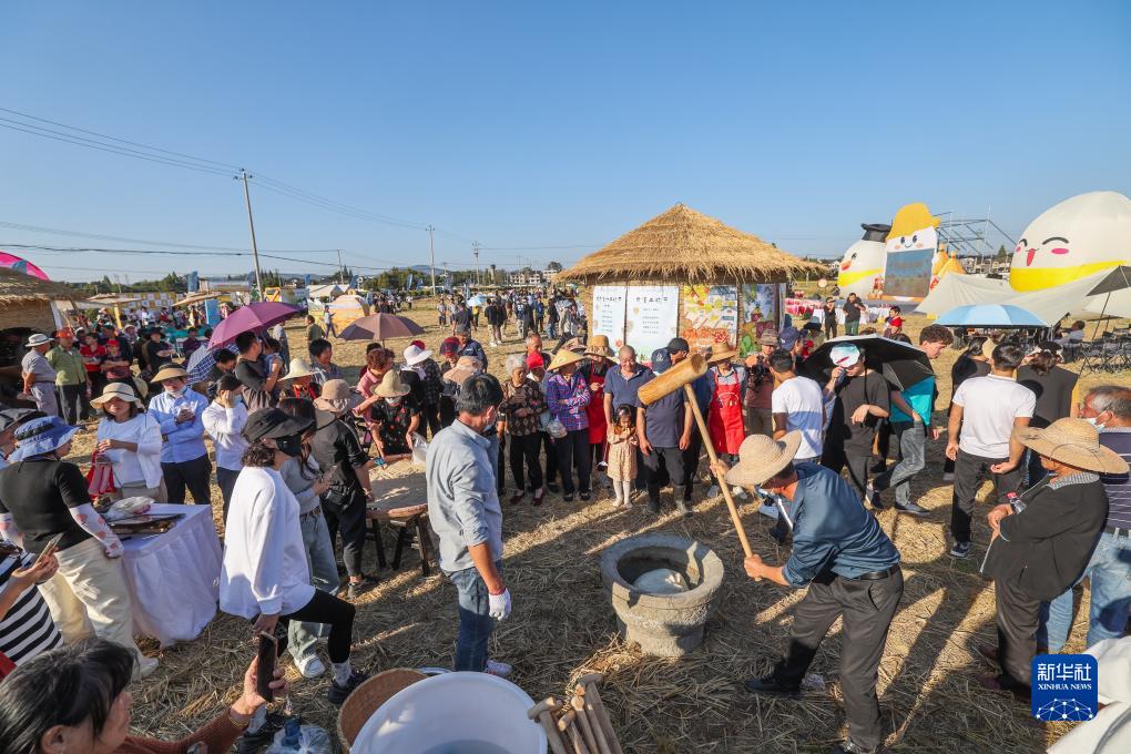 11月2日,人們在豐收市集觀(guān)看打年糕展示。