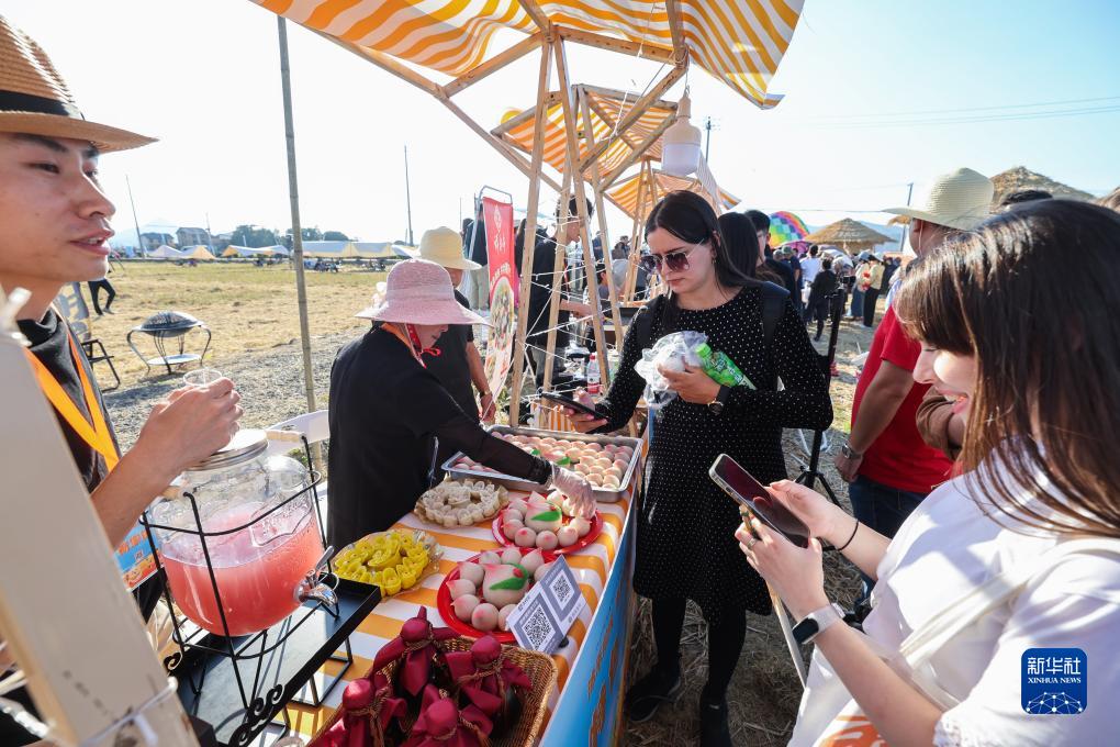 11月2日,游客在豐收市集購買(mǎi)特色農文旅產(chǎn)品。