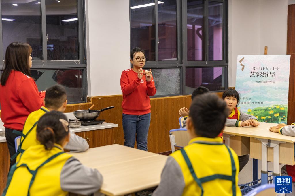 10月30日,在重慶市特殊教育中心,老師在勞動(dòng)課教室教三年級的視力障礙學(xué)生煎雞蛋。