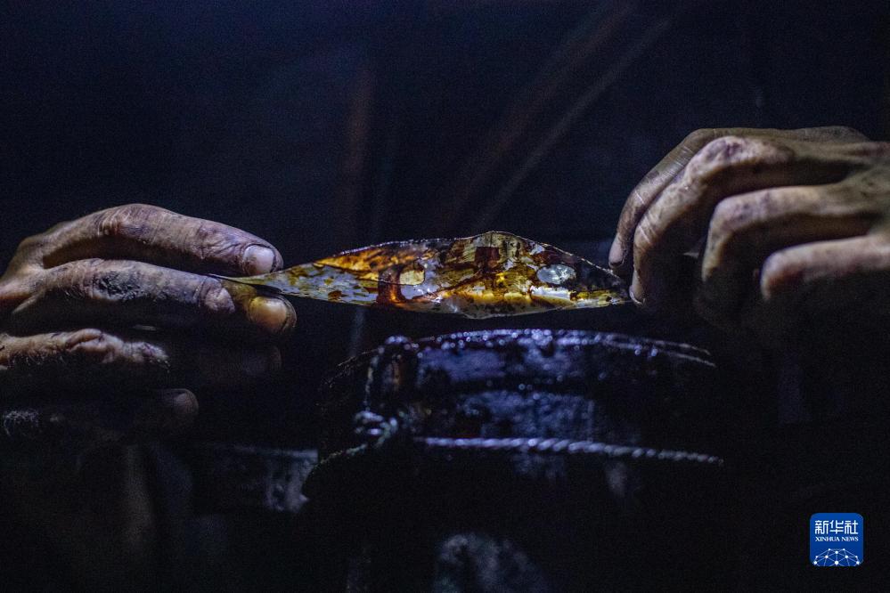 文森來(lái)到松柏村后陸續收徒,從基本功開(kāi)始,帶領(lǐng)徒弟知漆、用漆、懂漆。文森說(shuō),他的師父割漆匠楊天倫曾經(jīng)毫無(wú)保留地向自己教授技藝、分享心得。所以遇到前來(lái)請教的村民,他也會(huì )毫不吝惜分享經(jīng)驗。