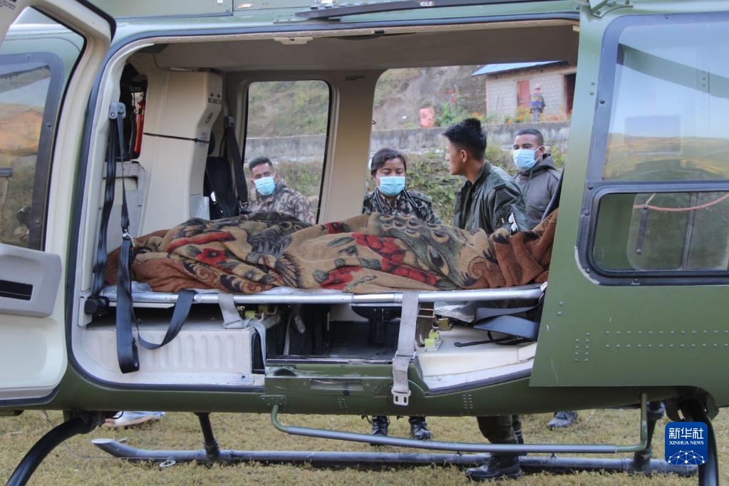 11月4日,尼泊爾軍方人員在尼泊爾西部扎澤爾果德參與救援行動(dòng)。