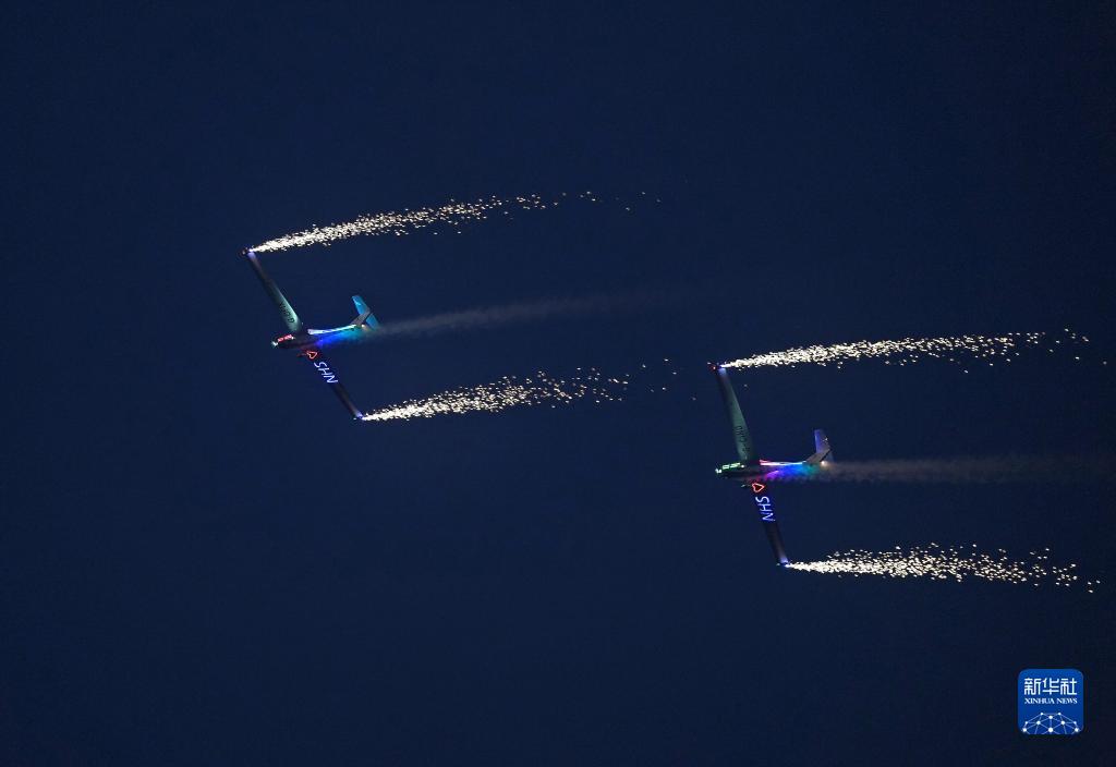 英國空中焰火飛行表演隊在進(jìn)行飛行展示(10月27日攝)。