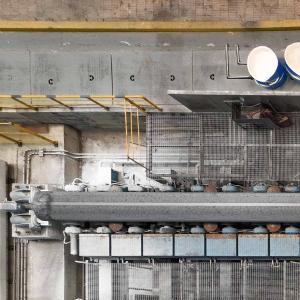 11月4日,在承德市營(yíng)子區一家特殊鋼生產(chǎn)企業(yè),工人操作傳送設備運送連鑄圓坯(無(wú)人機照片)。