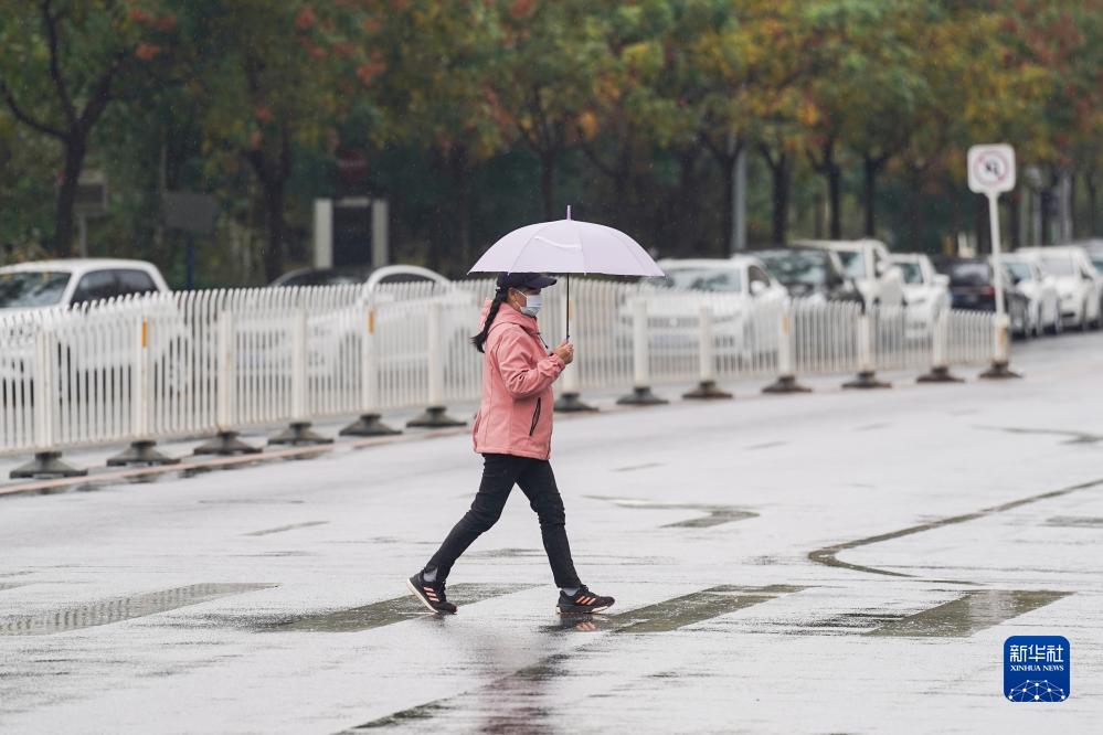 11月5日,北京市民在雨中出行。