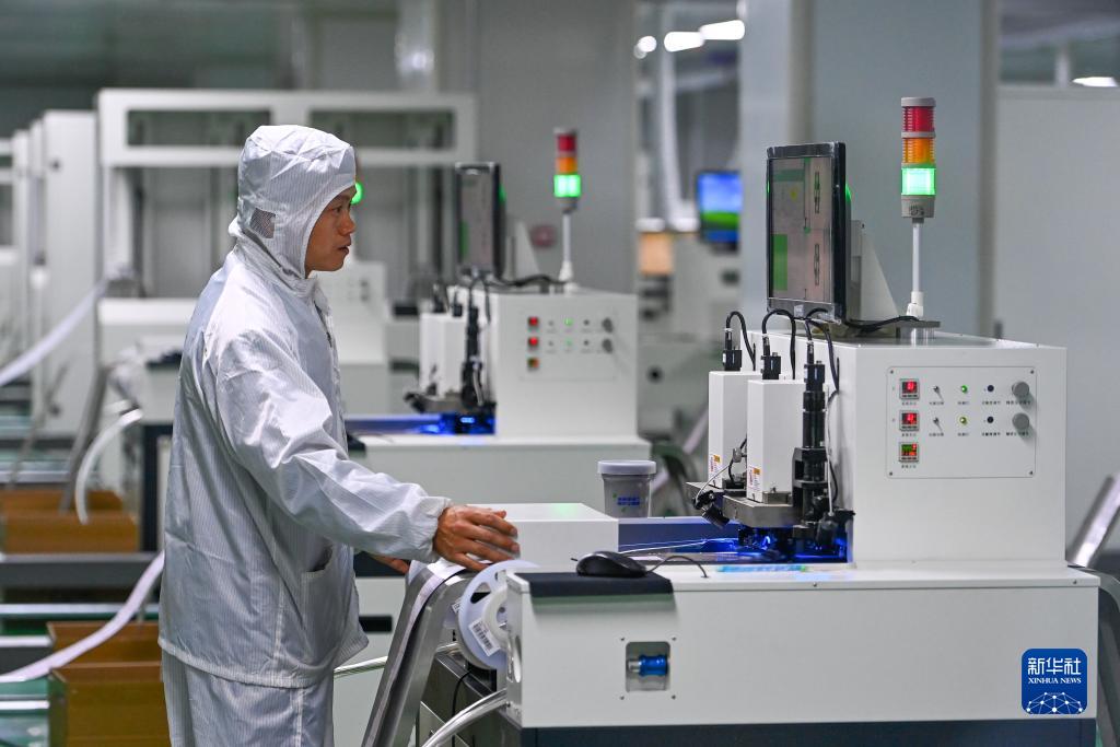 工作人員在新疆喀什綜合保稅區內的一家電子科技公司生產(chǎn)車(chē)間作業(yè)(11月4日攝)。