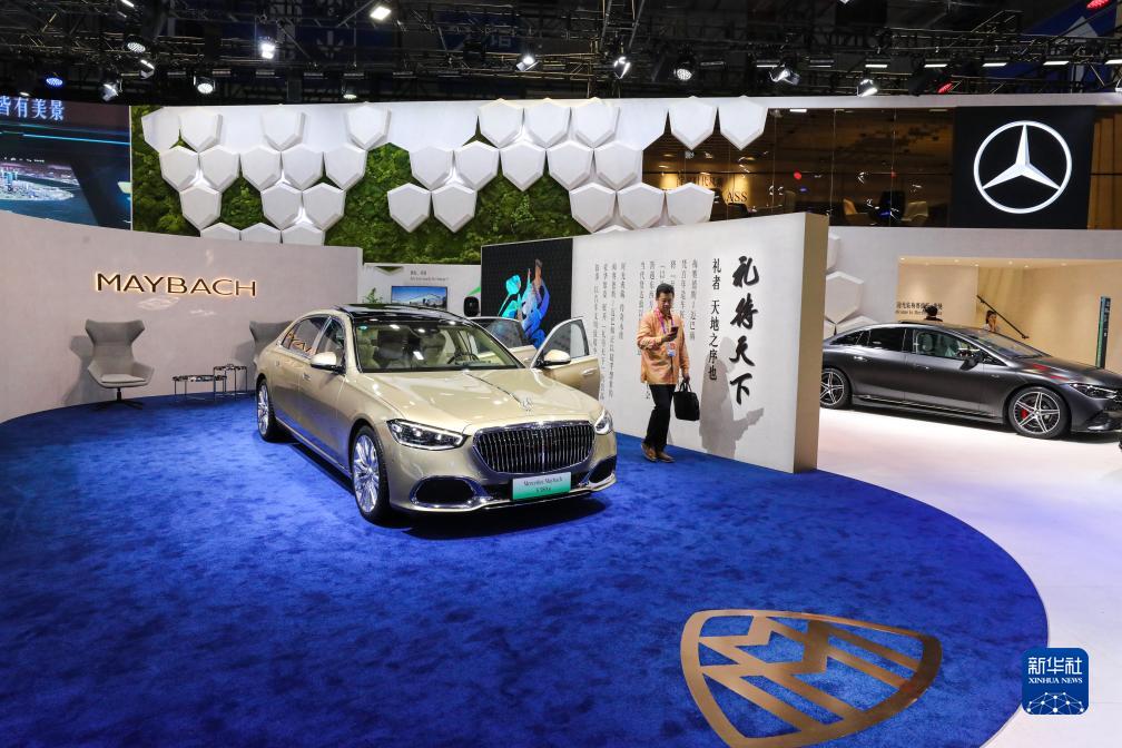 11月5日,參觀(guān)者經(jīng)過(guò)第六屆進(jìn)博會(huì )汽車(chē)展區梅賽德斯-邁巴赫S 580e車(chē)型。