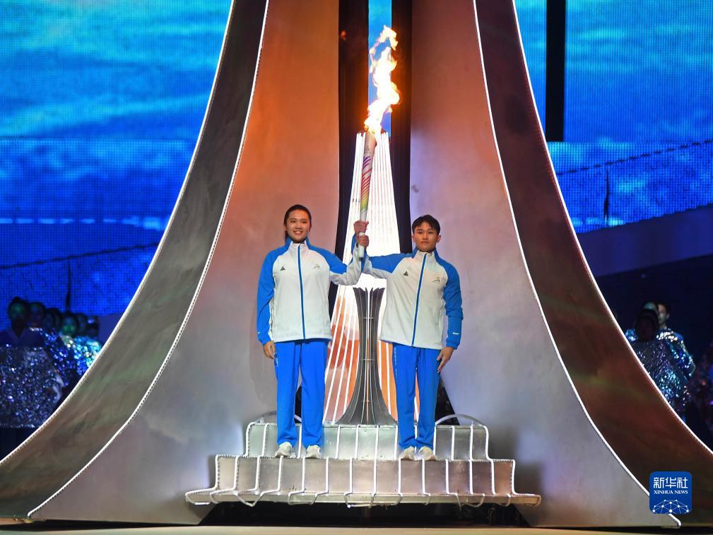 11月5日,火炬手黃雅晴(左)、蘭星宇在開(kāi)幕式上。